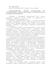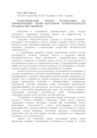 - Листопад, Наталія Петрівна (orcid.org/0000-0002-2922-8450) (2016) The designing of mathematic lessons in order to form the calculation competency in primary school students In: Инновационные технологии обучения физико-математическим профессионально-техническим дисциплинам : материалы VIІІ Междунар. науч.- практ. интернет-конф., Мозырь, 22–25 марта 2016 г. . МГПУ им. И. П. Шамякина, г. Мозырь, Беларусь, pp. 90-92. ISBN 978-985-477-602-6