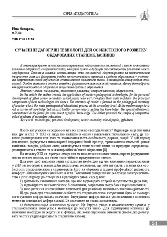 | Keywords: | technologies, personal development, senior secondary school pupils, giftedness |