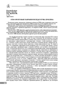 - Поліхун, Н.І. (orcid.org/0000-0002-0176-0752), Сліпухіна, Ірина Андріївна (orcid.org/0000-0002-9253-8021) and Чернецький, Ігор Станіславович (orcid.org/0000-0001-9771-7830) (2017) STEM-oriented learning as a pedagogical problem Pedagogical innovation, ideas, reality, perspectives, 2 (19). pp. 30-35. ISSN 2413-4139