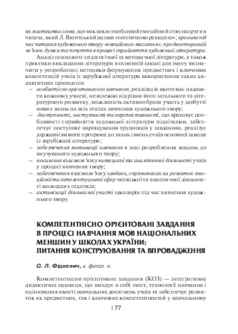 - Фідкевич, Олена Львівна (2016) Competence-oriented tasks in the process of teaching the languages of national minorities in the schools of Ukraine: design and implementation issues In: Анотовані результати науково-дослідної роботи Інституту педагогіки НАПН України за 2016р . Педагогічна думка, м. Київ, Україна, pp. 177-178. ISBN 978-966-644-398-5