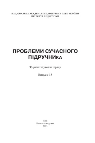 Інститут педагогіки, НАПН України (2013) Problems of a Modern Textbook (13). Педагогічна думка, м. Київ, Україна. ISBN 2411-1309
