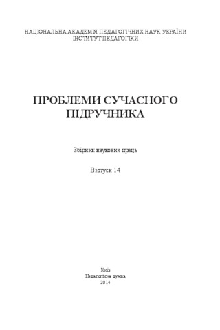Інститут педагогіки, НАПН України (2014) Problems of a Modern Textbook (14). Педагогічна думка, м. Київ, Україна. ISBN 2411-1309