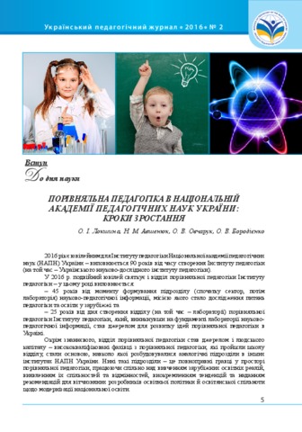 - Локшина, Олена Ігорівна (orcid.org/0000-0001-5097-9171), Авшенюк, Н.М., Овчарук, О.В. and Бородієнко, О.В. (2016) Comparative Pedagogy at the National Academy of Pedagogical Sciences of Ukraine: Steps of Growth Український педагогічний журнал, 2. pp. 5-12. ISSN 2411-1317