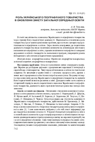 | Keywords: | geographic education, Ukrainian Geographical Society, School cell Geographical Society. |