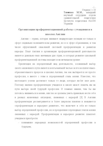 - Тименко, Марія Миколаївна (orcid.org/0000-0002-7639-5630) (2016) Organization of vocational guidance work with pupils at the school of England Педагогическое мастерство, 3. ISSN 2181-6883