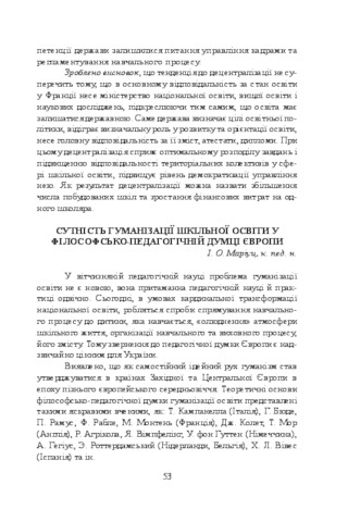 In the context of the analyzed works, it is proved that the humanization of education and school in the measurement of approaches of European scholars should be understood as their reorientation to the person, the formation of man as a unique integral creative personality, striving to maximize the realization of its capabilities, able to make a conscious and responsible choice in various life situations .