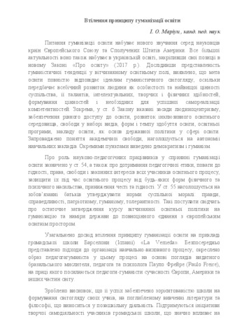 - Маріуц, Ілона Олександрівна (2017) Implementation of the principle of humanization of education In: Анотовані результати науково-дослідної роботи Інституту педагогіки НАПН України за 2017 рік . Інститут педагогіки НАПН України, м. Київ, Україна, pp. 34-35. ISBN 978-966-644-398-5