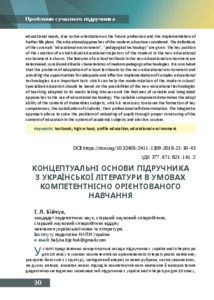 The article is devoted to the conceptual bases of the Ukrainian literature textbook in conditions of competence-oriented literary teaching. Effective methods, techniques, principles of a teacher’s and student’s work with a textbook are described. Its content, structure, methodical apparatus, main headings, the application of which, according to the author, requires new approaches to the use of didactic and methodological features of a textbook, illustrations in the lessons of Ukrainian literature, modern innovative, interactive technologies of teaching Ukrainian literature are characterized. Implementation of the described methods, techniques, principles, competence-based tasks, competence-oriented and personality-oriented teaching in the lessons of Ukrainian literature allows a teacher-philologist to implement in practice the ideas of a competenceoriented model of education, pedagogy of cooperation, group forms of students’ work on project activity on the basis of competent and active teaching, formation of key and subject reader competences, a competent student-reader. It is emphasized that the present textbook contains the characteristics of self-instruction which is practice oriented and technological. The structure and content of the school books give a clear picture of what and how to teach and learn. Tесhnology tutorial offers the teacher a guide to the scope and nature of educational material, its sequence, methods and techniques of work, the student recommendations for the effective assimilation of subject content at any desired level, building skills to learn, to acquire knowledge, skills and self-development.