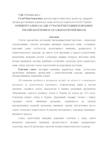 - Голуб, Ніна Борисівна (2015) Conceptual foundations of modern teaching methods of the Ukrainian language in general education school Український педагогічний журнал, 1. pp. 107-117. ISSN 2411-1317