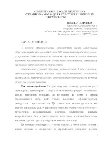 - Бондаренко, Неллі Володимирівна (2015) Conceptual principles of the textbook "Ukrainian language" for the 8th form of education with Ukrainian studies Дивослово, 10. pp. 10-14.