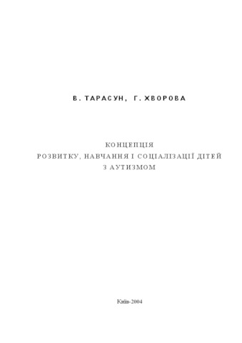 Концепція розвитку, навчання і соціалізації дітей з аутизмом: Навч. посіб. для вищих навч. закладів / В.В. Тарасун, Г.М. Хворова; За наук. ред. Тарасун В.В. - К.: Наук. світ, 2004. – 100 с. |