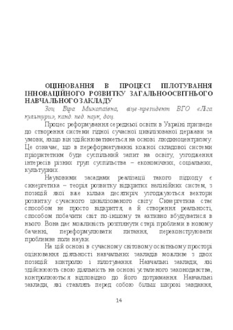 - Зоц, Віра Миколаївна (2015) Evaluation in the process of piloting innovative development of a general educational institution In: Теорія і практика оцінювання інноваційного розвитку загальноосвітнього навчального закладу : збірник тез Всеукраїнської науково-практичної конференції (м. Київ, 26-27 жовтня 2015 р.). . Педагогічна думка, м. Київ, Україна, pp. 14-15. ISBN 978-966-399-913-5