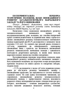 The thesis examines the results of experimental verification of the theoretical positions regarding the innovative development of a general educational institution and its evaluation.