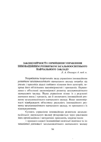 - Онищук, Людмила Анатоліївна (orcid.org/0000-0002-7854-9314) (2015) Laws and principles of management of innovative development of general educational institution In: Анотовані результати науково-дослідної роботи Інституту педагогіки НАПН України за 2015 рік . Педагогічна думка, м. Київ, Україна, pp. 94-96. ISBN 978-966-644-398-5