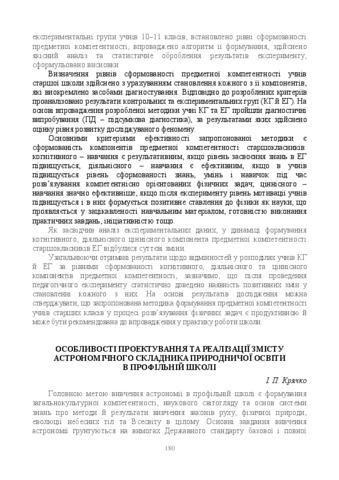 - Крячко, Іван Павлович (orcid.org/0000-0002-3595-5478) (2017) Features of the design and implementation of the content of the astronomical component of natural education in the profile school In: Анотовані результати науково-дослідної роботи Інституту педагогіки НАПН України за 2017 рік . Педагогічна думка, м. Київ, Україна, pp. 180-181. ISBN 978-966-644-398-5