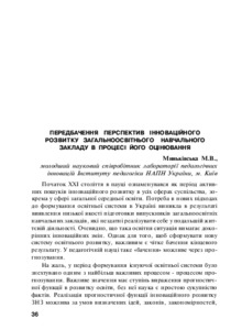 - Миньківська, М.В. (2014) Forecasting the perspectives of innovative development of general educational institution in the process of its evaluation In: Збірник тез доповідей Всеукраїнської науково-практичної конференції з міжнародною участю «Управління інноваційним розвитком загальної середньої освіти в умовах соціально-економічної реформ» . Наші книги, м. Чернівці, Україна, pp. 36-37.
