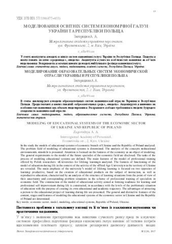 | Keywords: | economic sector, model, modeling, educational systems, Republic of Poland, Ukraine |