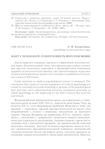 | Keywords: | crisis in psychology, methodology of psychological science, object of psychology, psychological fact. |
