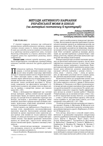 - Галаєвська, Л.В. (2016) Methods of active teaching of the Ukrainian language at school (Based on syntax and punctuation material) Українська мова і література в школі, 6. pp. 16-21.