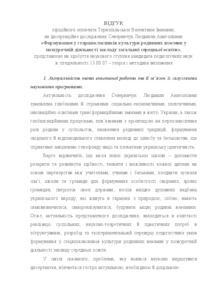 The dissertation defines and substantiates the theoretical and methodical principles of formation of family relationships among high school students in extracurricular activities of the institution of general secondary education. There are some peculiarities of formation of culture of the relationship among the high school students in the modern institution of general secondary education with the account of age changes wich are typical for the senior school age: the need for support of the family; the focus on personal self-determination; self-affirmation in the field of interpersonal communication; the importance of acquiring the ability to interact with other members of the family in accordance with universal moral and spiritual norms; awareness of the need to be prepared for future family life and parenthood; the expediency of using forms and methods of work in educational process that contribute to the personal development of students, the construction of their own life strategy. The main conceptual approaches studying the problem of forming a culture of family relationships have been analyzed and actualized that the creation of harmonious family relationships is conditioned by systemic implementation of each member of the family of self-knowledge, self-formation of personal inner culture, which implies the ability to detect negative personality qualities and transform them into positive according to universal human-spiritual values. A positive personal example of the manifestation of culture in everyday communication of parents, relatives, teachers, other adults important for a child, and encouraging the child to self-identify activities contribute to the formation of a future family man, able to create a harmonious family, to bring up physically and mentally healthy offspring. On the basis of the analysis of scientific and pedagogical research, the structural components of the culture of family relationships heve been revealed - cognitive (defines the level of awareness, the aggregate of knowledge about the culture of family relationships), emotionally valuable (characterized by the formation of emotionally positive attitude to the norms and values of the culture of family relationships), activity component (reflects socio-normative ability to interact with other family members). In the context of the research, it is determined that high school students, participating in communications in the parents' family, preparing for creation of their family, the birth and upbringing of children in the future, should know the basics of the functioning of a harmonious family; to adhere to the «norms of the cultural background»; to show respect, responsibility, independence, diligence in family communications; be able to carry out self-knowledge activities to increase personal level of culture and culture family relationships. The pedagogical conditions for the formation of the family relationship culture among high school students in the extracurricular activities of the institution of general secondary education were substantiated and experimentally verified:-providing educational and methodological support for the formation of family relationships among high school students by means of self-knowledge; improvement of scientific and methodological training of teachers for the formation of the culture of family relationships of high school students on the basis of personal and professional self-improvement;-development and implementation of a program of measures for parents to improve parenting competence and the level of culture of family relationships. In order to increase the level of formation of the family culture relationship among high school students, the cultural and educational program «Formation of family relationships among high school students by means of self-knowledge» was developed and introduced into the extracurricular activities of institutions of general secondary education; a program of scientific and methodical workshop for teachers, and a program of educational events for parents, aimed at obtaining participants of the pedagogical process of knowledge about norms and rules of communication in the family, mastering the basics of self-knowledge, raising the level of general culture and the culture of family relationships. The most effective forms and methods of educational work with high school students include: presentations, literary and musical parties, work in groups, independent work, analysis of educational, life situations, discussion of literary works of moral and ethical orientation, self-observation, self-examination, self-evaluation, comparison, self-control, discussion, informing, example, persuasion, explanation, discussion, dialogue interaction, brainstorming, communicative exercises, rule making, unfinished sentences method, drafting of individual program We self and others. The following forms of working with parents have been used: round tables, discussions, creative tasks, discussion of problem situations, group and individual consultations, as well as the introduction of self-cognitive activities into the practice of everyday life of the family (self-observation, self-examination, self-esteem, comparison, self-control). The contents of the work with teachers proved to be effective such forms and methods as conversation-debate, lecture, scientific and methodical seminar, round table, webinar, Internet conference, training and others. The scientific novelty of the obtained results is that for the first time: a holistic theoretical analysis of the problem of formation of family relationships among high school students on the basis of the ideas of personally oriented, axiological, acmeological, competence, systemic, holistic, culturological, synergetic, activity approaches was carries out; the cultural-educational program «Formation of the culture of the relationship among the high school students»; has been developed pedagogical conditions for the form