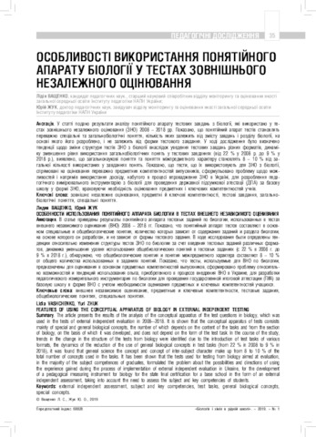 - Ващенко, Л.С. (orcid.org/0000-0002-0637-2142) and Жук, Ю.О. (orcid.org/0000-0002-6932-2484) (2019) Features of using the conceptual apparatus of biology in external independent testing summary Біологія і хімія в рідній школі, 1. pp. 35-41.
