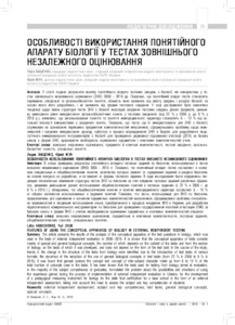 The article presents the results of the analysis of the conceptual apparatus of the test questions in biology, which was used in the tests of external independent evaluation in 2008–-2018. It is shown that the conceptual apparatus of tests consists mainly of special and general biological concepts, the number of which depends on the content of the tasks and from the section of biology, on the basis of which it was developed, and does not depend on the form of the test task. In the course of the study, trends in the change in the structure of the tests from biology were identified due to the introduction of test tasks of various formats, the dynamics of the reduction of the use of general biological concepts in test tasks (from 22 % in 2008 to 9 % in 2018), it was found that general science the concept and concept of inter-subject character make up from 8 to 10 % of the total number of concepts used in the tasks. It has been shown that the tests used for testing from biology aimed at evaluation, in the majority of the subject competences of graduates, formulated the problem about the possibilities and directions of using the experience gained during the process of implementation of external independent evaluation in Ukraine, for the development of a pedagogical measuring instrument for biology for the state final certification for a base school in the form of an external independent assessment, taking into account the need to assess the subject and key competencies of students.