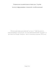 - Кільченко, А.В. (orcid.org/0000-0003-2699-1722) and Новицький, С.В. (orcid.org/0000-0003-2640-5121) (2019) Monitoring the web resource of the "Institute of Information Technologies and Learning Tools of NAES of Ukraine" with the help of Google Analytics: report for October-December 2018 [Experiment]
