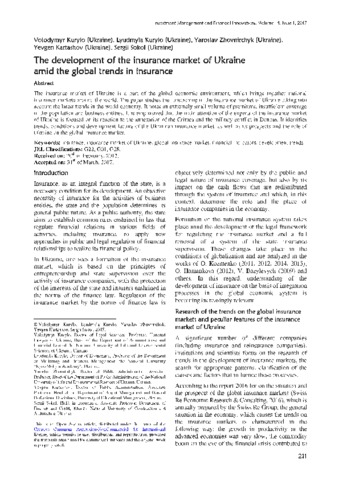 - Kartashov, Y., Kurylo, V., Kurylo, L., Zhovnirchyk, Y. and Sokol, S. (2017) The development of the insurance market of Ukraine amid the global trends in insurance Investment Management and Financial Innovations, 1 (14). pp. 211-216. ISSN 1812-9358