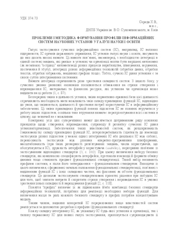 The article is devoted to the problems and methods of formation of information systems` profiles of scientific institutions in the branch of science and education.
