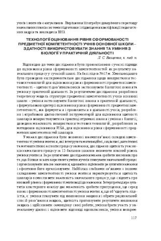 - Ващенко, Л.С. (orcid.org/0000-0002-0637-2142) (2014) Technologies for assessing the level of formation of the subject competence of primary school students - the ability to apply knowledge and skills in practice In: Анотовані результати науково-дослідної роботи Інституту педагогіки НАПН України за 2014 рік . Інститут педагогіки, м.Київ, Україна, pp. 117-118. ISBN 978-966-644-398-5