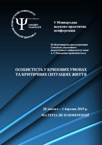 Сумський державний педагогічний університет, імені А. С. Макаренка, Інститут психології імені Г.С.Костюка, НАПН України, Переяслав-Хмельницький державний педагогічний університет, імені Григорія Сковороди, Уманський державний педагогічний університет, імені Павла Тичини, Харківський національний педагогічний університет, імені Г.С. Сковороди and УНМЦ практичної психології і соціальної роботи, НАПН України (2019) Personality in crisis conditions and critical situations of life: materials of the V International scientific and practical conference (February 28 - March 1, 2019, Sumy) . Вид-во СумДПУ імені А.С. Макаренка, м. Суми, Україна.