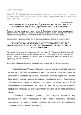 Mikhno 2007. Організація дослідницької діяльності старшокласників у процесі вивчення новели М.Коцюбинського Цвіт яблуні.pdf Download (214kB) | Preview |