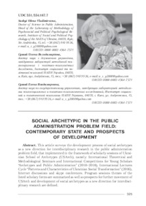 | Keywords: | social archetypes, Ukrainian School of Archetypes, public administration, Ukraine, csocial and kultural practices. |