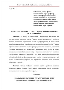 - Яковець, В.П. (2014) The global calls and strategist purposes of educational reform in Ukraine Theory and methods of educational management, 3 (14). ISSN 2310-2411