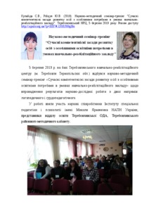 On March 5, 2019, on the basis of the Terebovlyan Educational and Rehabilitation Center, a scientific and methodical seminar-training "Modern Competence Fundamentals for the Development of Persons with Special Educational Needs in the Conditions of the Educational-Rehabilitation Institution" was held on the implementation of the results of research work in two areas: speech therapy and surdo pedagogical .