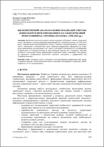 Bibliometric analysis of scientific publications on preschool education and training in national absracts database „Ukrainika scientific” (1998–2012) (deposited 28 Nov 2014 16:17)