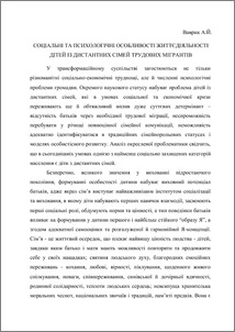 Окремого наукового статусу набуває проблема дітей із дистантних сімей, які в умовах соціальної та економічної кризи переживають ще й обтяжливий вплив дуже суттєвих детермінант – відсутність батьків через необхідної трудової міграції, неспроможність перебувати у річищі повноцінної сімейної комунікації, неможливість адекватно ідентифікуватися в традиційних сімейнорольових статусах і моделях особистісного розвитку. Аналіз окресленої проблематики свідчить, що в сьогоднішніх умовах однією з найменш соціально захищених категорій населення є діти з дистантних сімей.