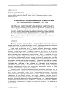 the article highlights relevant current problems concerning the formation, present state and prospects of the development of the native electronic professional editions on pedagogy. The historical overview of the development of the electronic books in the world and in Ukraine in general, and also including the professional editions was made. It was conducted the analysis of national and international legal framework for existing electronic editions, as well as researched the structure and software of the native electronic professional editions on pedagogy. Based on the results, it was formulated the conclusions and developed some suggestions for the improvement of electronic editions.