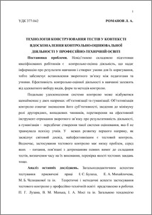 - Романов, Л.А. (2014) Technology of designing tests in the context of improving the control and assessment activities in vocational education Професійна освіта: проблеми і перспективи, 6. pp. 45-50.