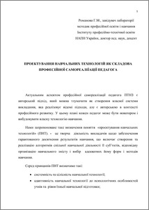 У статті ндано визначення поняття "проектування навчальних технологій", охарактеризовано принципи та складові проектування навчальних технологій в контексті професійної самореалізацї педагога.