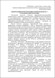 Тези присвячено питанням визначення інформаційно-комунікаційної компетентності вітчизняними та зарубіжними дослідниками.