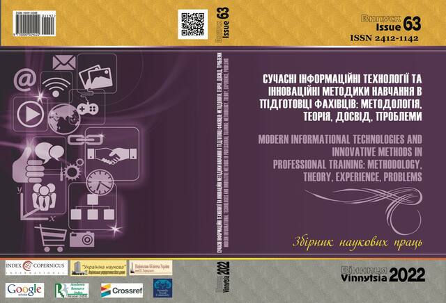Міністерство освіти і науки України, МОН України, НАПН, України, ІПООД, НАПН України, Інститут професійної освіти, НАПН України, Інститут цифровізації освіти, НАПН України, Вінницький державний педагогічний університет, Імені Михайла Коцюбинського and Навчально-науковий інститут педагогіки, психології, підготовки, фахівців вищої кваліфікації (2022) Modern information technologies and innovative teaching methods in training: methodology, theory, experience, problems (63). ТОВ «Друк плюс», м. Вінниця, Україна. ISBN 978-966-2337-01-3
