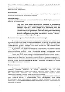- Савіна, М.І. (2014) Дослідження статеворольової ідентифікації молодших школярів Практичний психолог: Школа, 3. pp. 24-33.