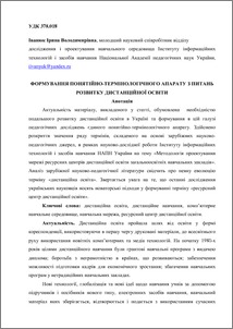 - Іванюк, І.В. (orcid.org/0000-0003-2381-785X) (2012) Forming a conceptual and terminological apparatus for development of distance education Інформаційні технології і засоби навчання, 31. ISSN 2076-8184