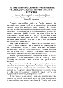 The development of distance education in Ukraine requires the formation in the field of educational research a single conceptual terminology. Done disclosure of terms drawn up on the basis of foreign scientific and educational sources in the framework of the research program of the Institute of Information Technologies and Teaching NAPS of Ukraine on the topic "Methodology network design of resource centers of Distance Education for secondary schools."