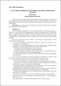 - Кравцов, Г.М. (2009) Evaluation Metrics of Electronic Learning Resources Quality Збірник наукових праць "Інформаційні технології в освіті", 1 (3). pp. 141-147. ISSN 1998-6939