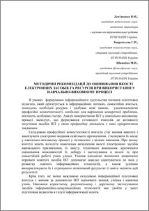 - Дем’яненко, В.М., Лаврентьєва, Г.П. and Шишкіна, М.П. (2012) Guidelines to quality evaluation of electronic tools and resources used in educational process Computer at School and at Home , 7 (103). pp. 3-7.
