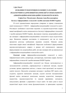 - Спірін, О.М. (orcid.org/0000-0002-9594-6602) and Яцишин, А.В. (orcid.org/0000-0001-8011-5956) (2013) Features of the Highest Qualification in Tte Specialty «Information and Communication Technologies in Education» Інформаційні технології в освіті (14). pp. 22-33.