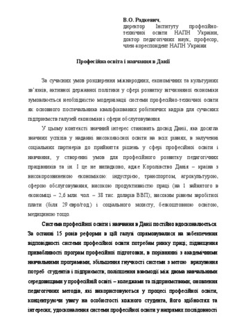 - Радкевич, В.О. (2014) Професійна освіта і навчання в Данії Професійно-технічна освіта, 1 (62). pp. 54-55.