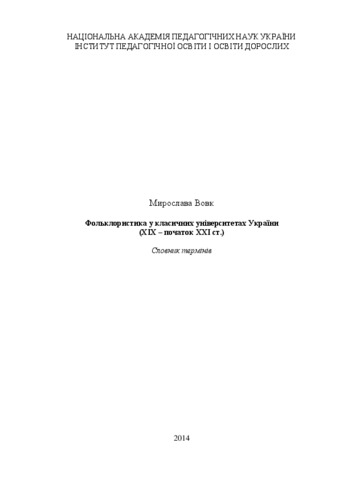 - Вовк, М.П. (orcid.org/0000-0002-9109-9194) (2014) Фольклористика у класичних університетах України (ХІХ – початок ХХІ ст.): словник термінів [Teaching Resource]